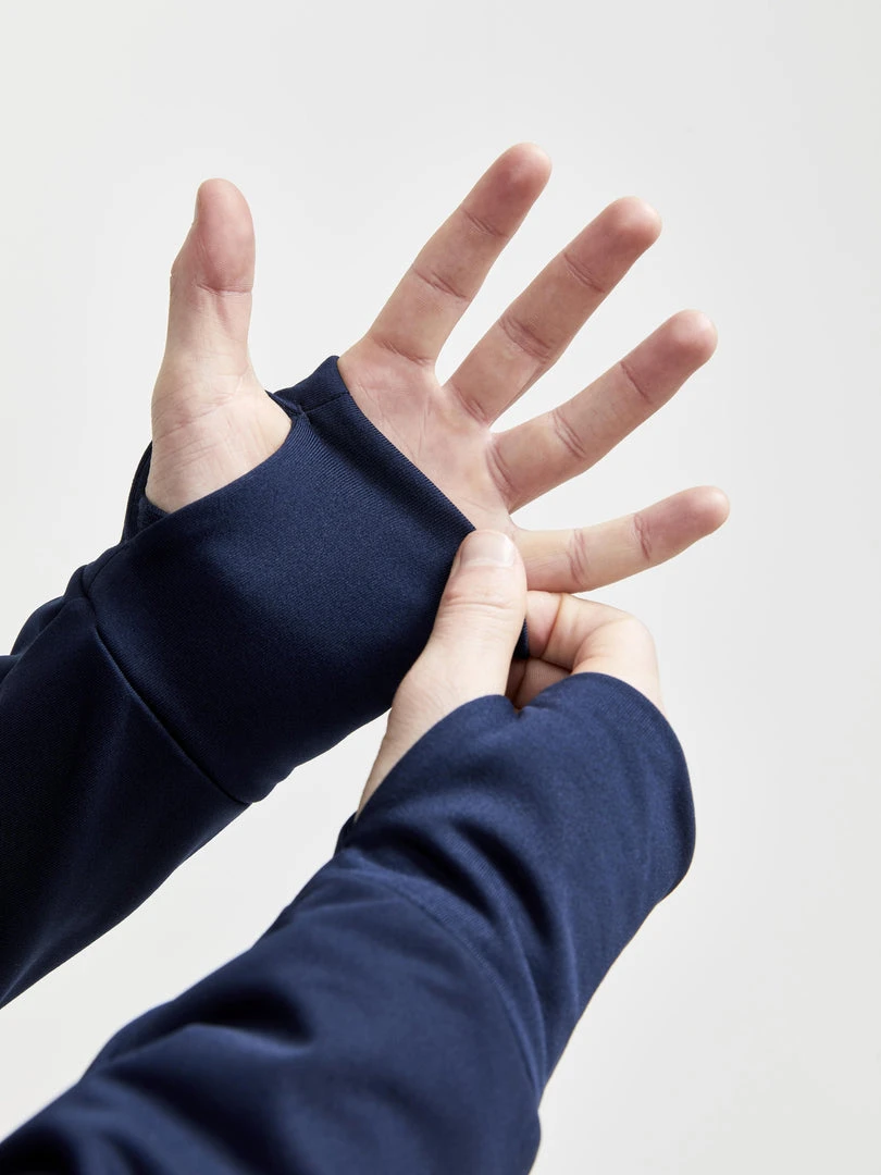 Thoughtful details abound in this powerfully designed multi-sport jacket. Quilted padding and wind protective fabric at the front and sleeves provide superior warmth. Essential features such as thumb grips at sleeve endings, zip side pockets, and reflective prints round out this outdoor staple perfect for all of your outdoor adventures on cooler days.