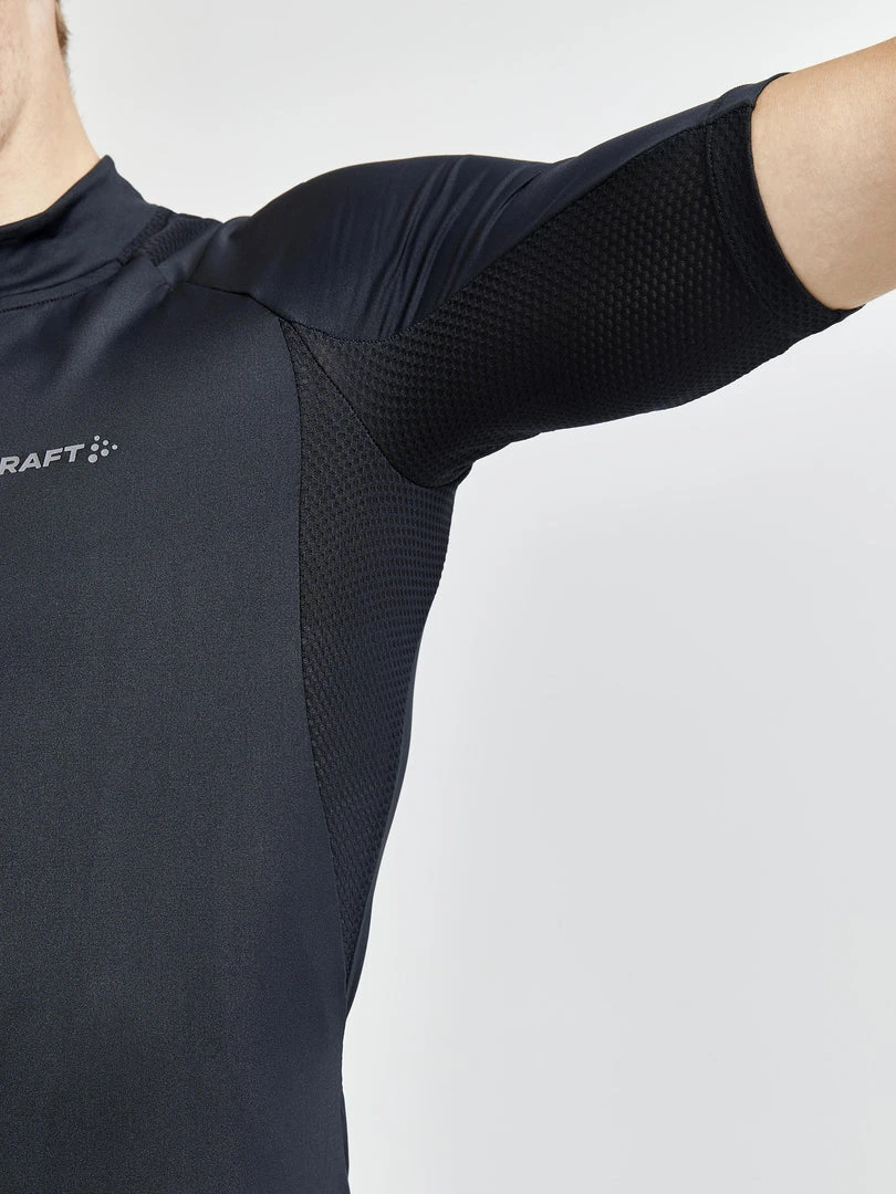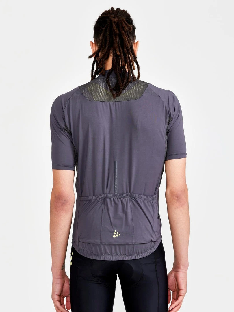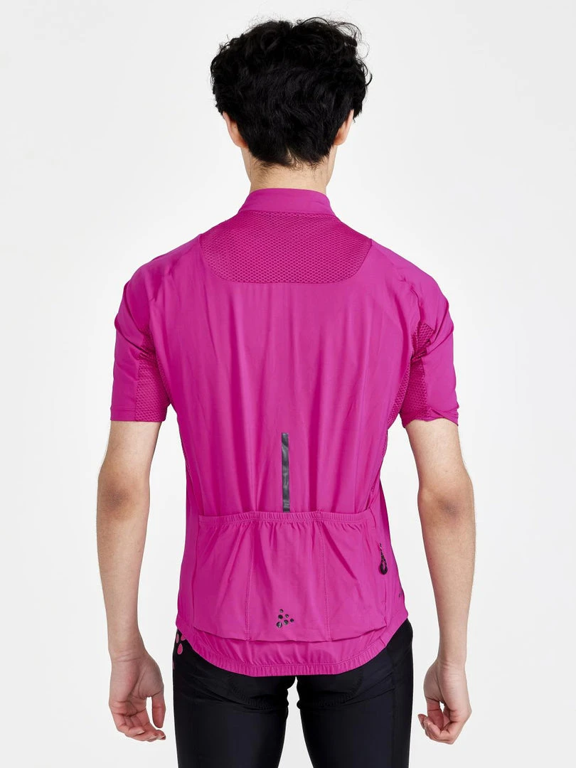Our pro-grade bike jersey is fully equipped for unmatched performance. Highly functional fabric ensures maximum comfort with exceptional moisture transport, mesh panels throughout allow for essential ventilation and four back pockets provide safety and storage.