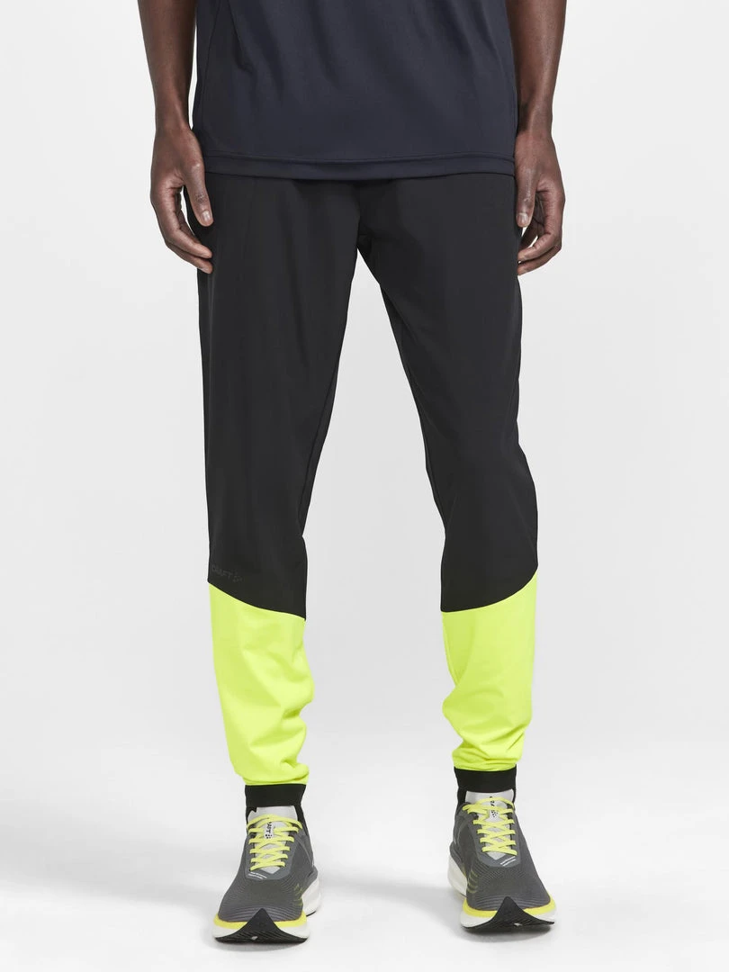 Our favorite training pants in woven stretch polyester with tapered leg, elastic jersey at bottom for optimal fit and two concealed side pockets.