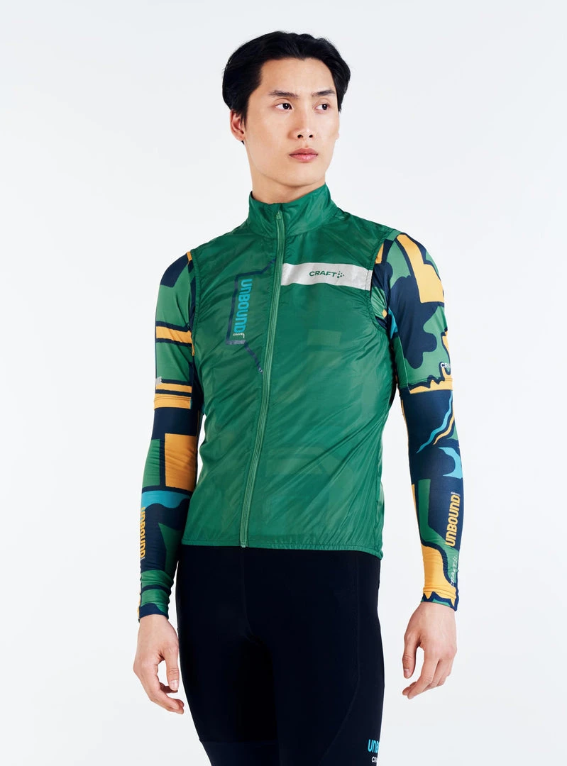 Lightweight (45 gsm,) wind-protective and water-repellent bike vest that is a great companion on cool and windy rides. Perforated fabric at sides and back for enhanced ventilation. Easily stowable in jersey pocket.