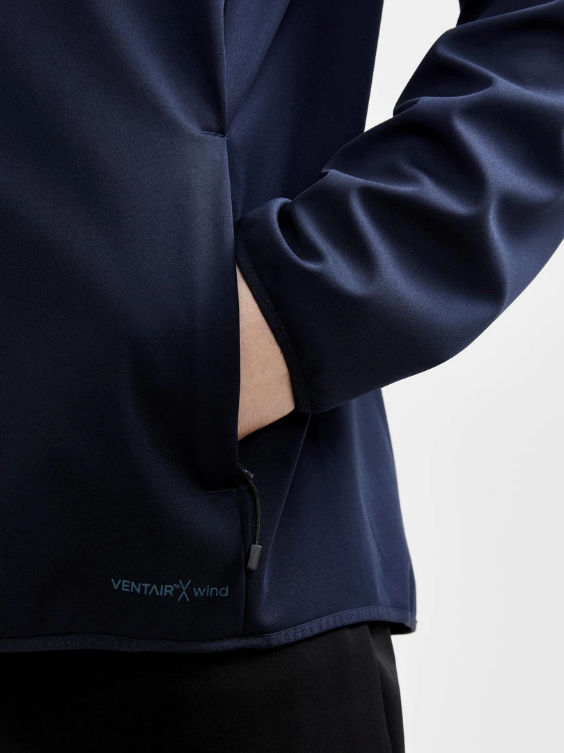This jacket is perfect for layering. Its combination of elastic 3L wind- and waterproof fabric and elastic jersey at back and under sleeves help you remain warm during cold-condition outdoor training while preventing overheating.