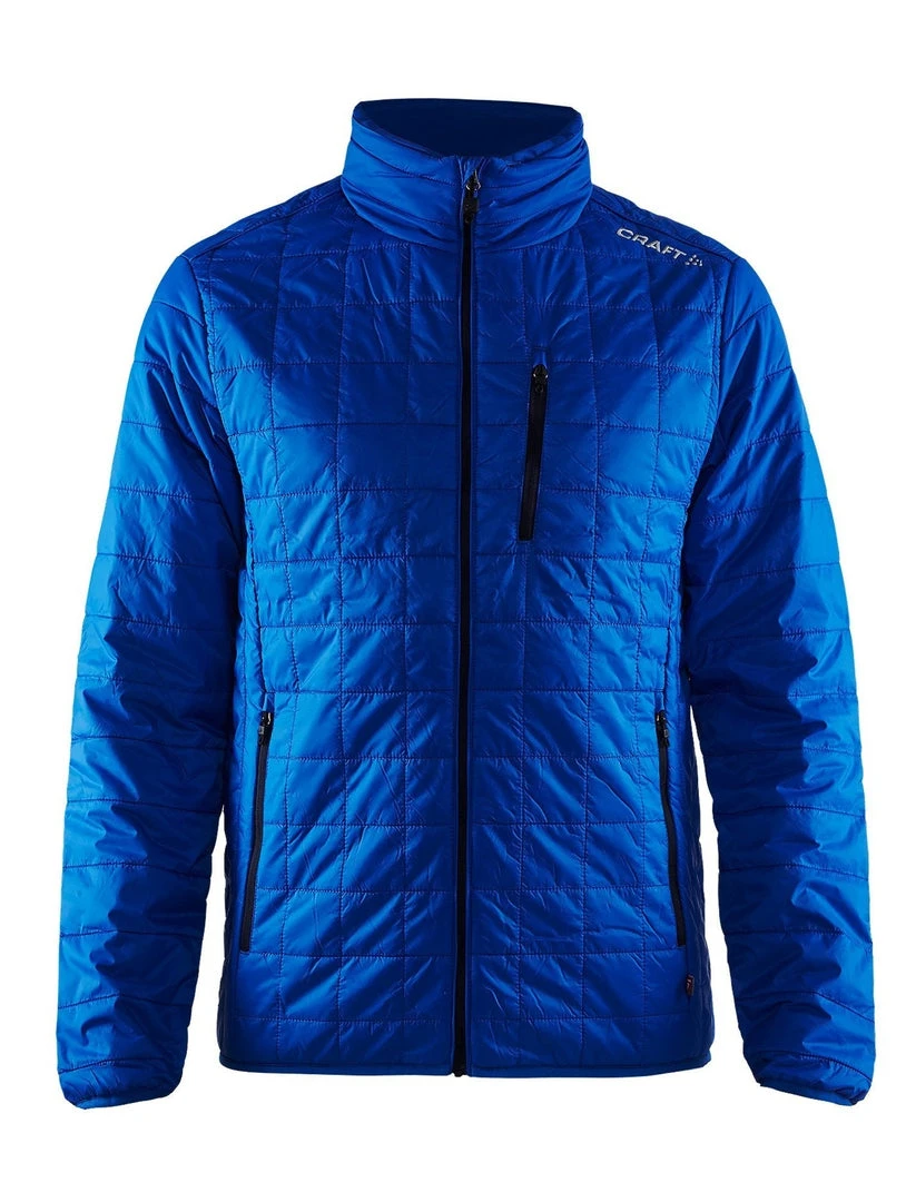 Lightweight insulation jacket. Active sporty fit, perfect for outer layer or to use as insulation under a shell. YKK zippers in contrasting colors. Compressible, packs into one of two hand pockets. Hood hidden in collar.