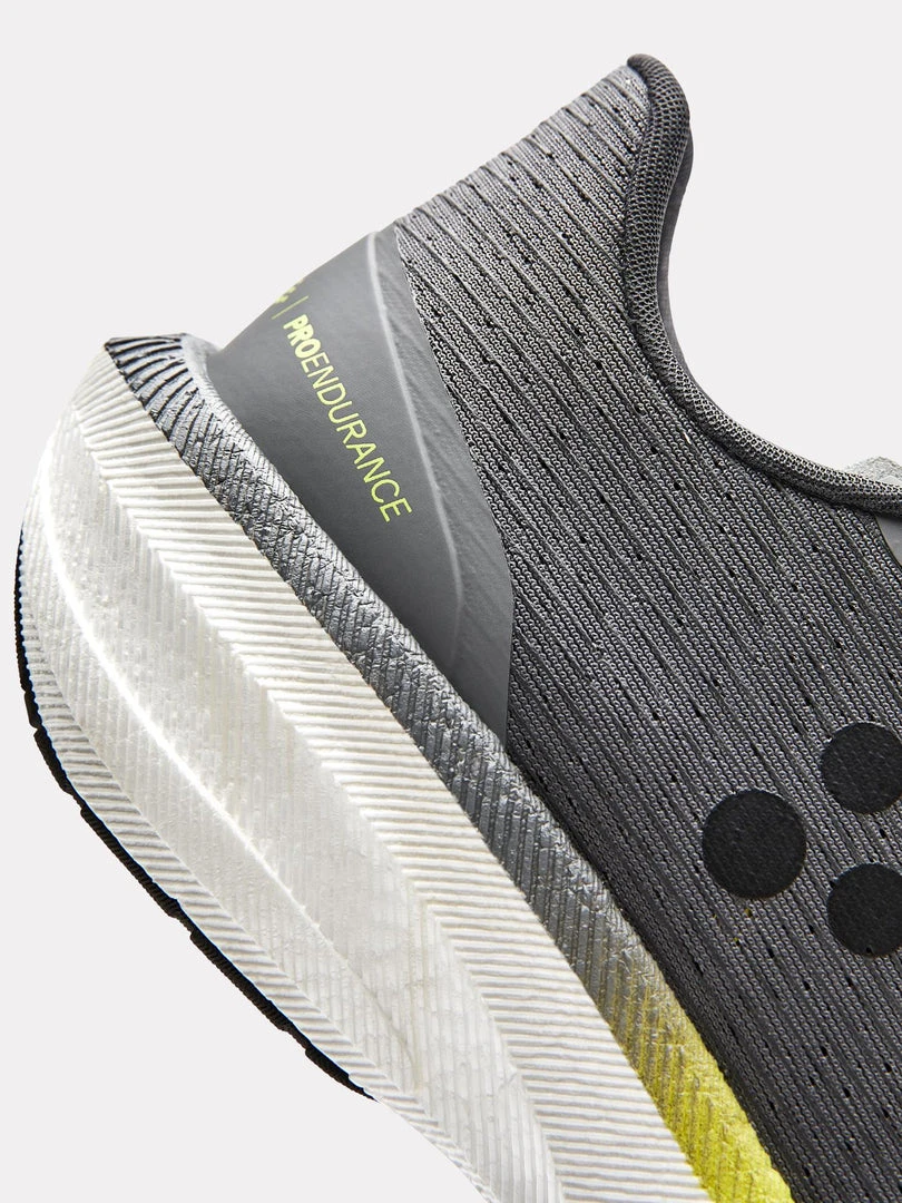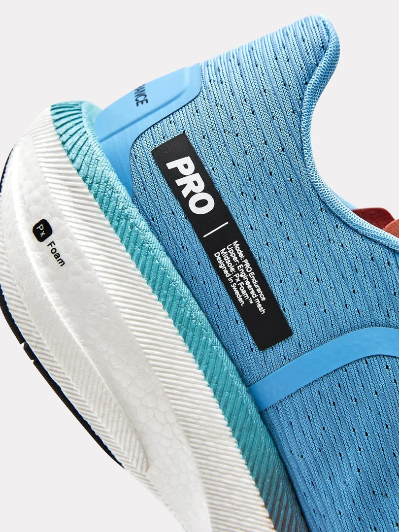 The PRO Endur Distance shoe brings a new level of responsiveness to serious runners. The Px Foam midsole is designed to optimum stack height for explosive toe off and feather soft landing to for efficient stride. Every contour of this platform was carefully considered to provide maximum energy and varying speeds. The fully engineered one-piece mesh upper works in unison with the foot to provide comfort and support with every nimble step. This shoe shines with vibrant performance and simplicity in design.