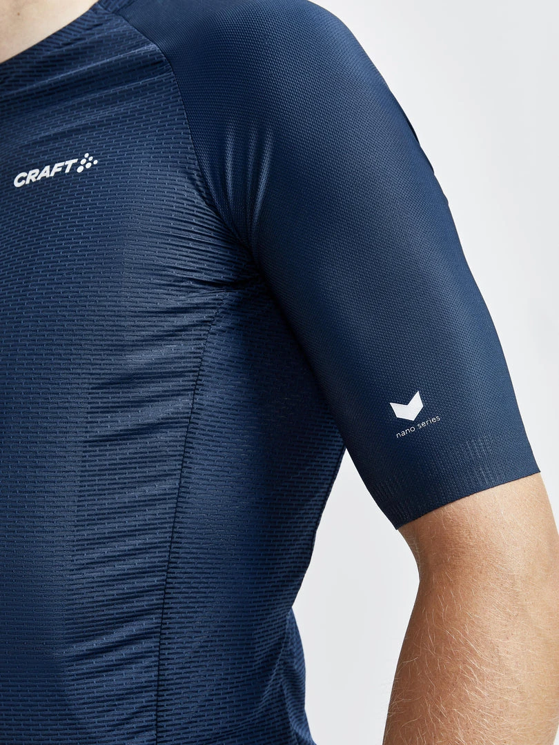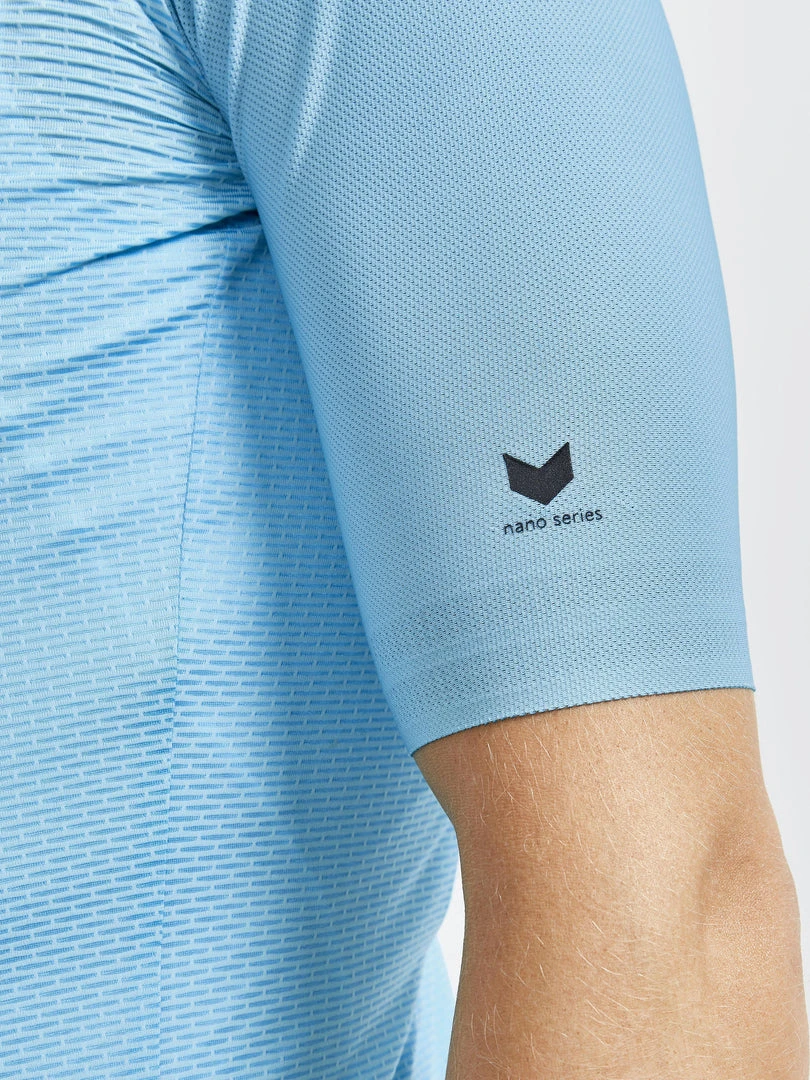 Extremely lightweight cycling jersey featuring Nanoweight mesh fabric for superior ventilation during intense rides on hot summer days. Partly recycled fabric, silicone dots at sleeve ends and four back pockets (one zip) round out this pro-grade jersey that can handle your most intense rides.