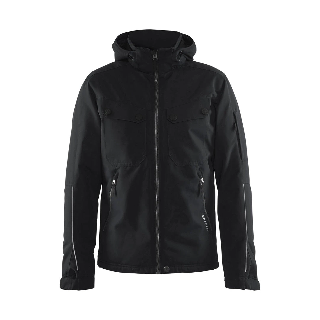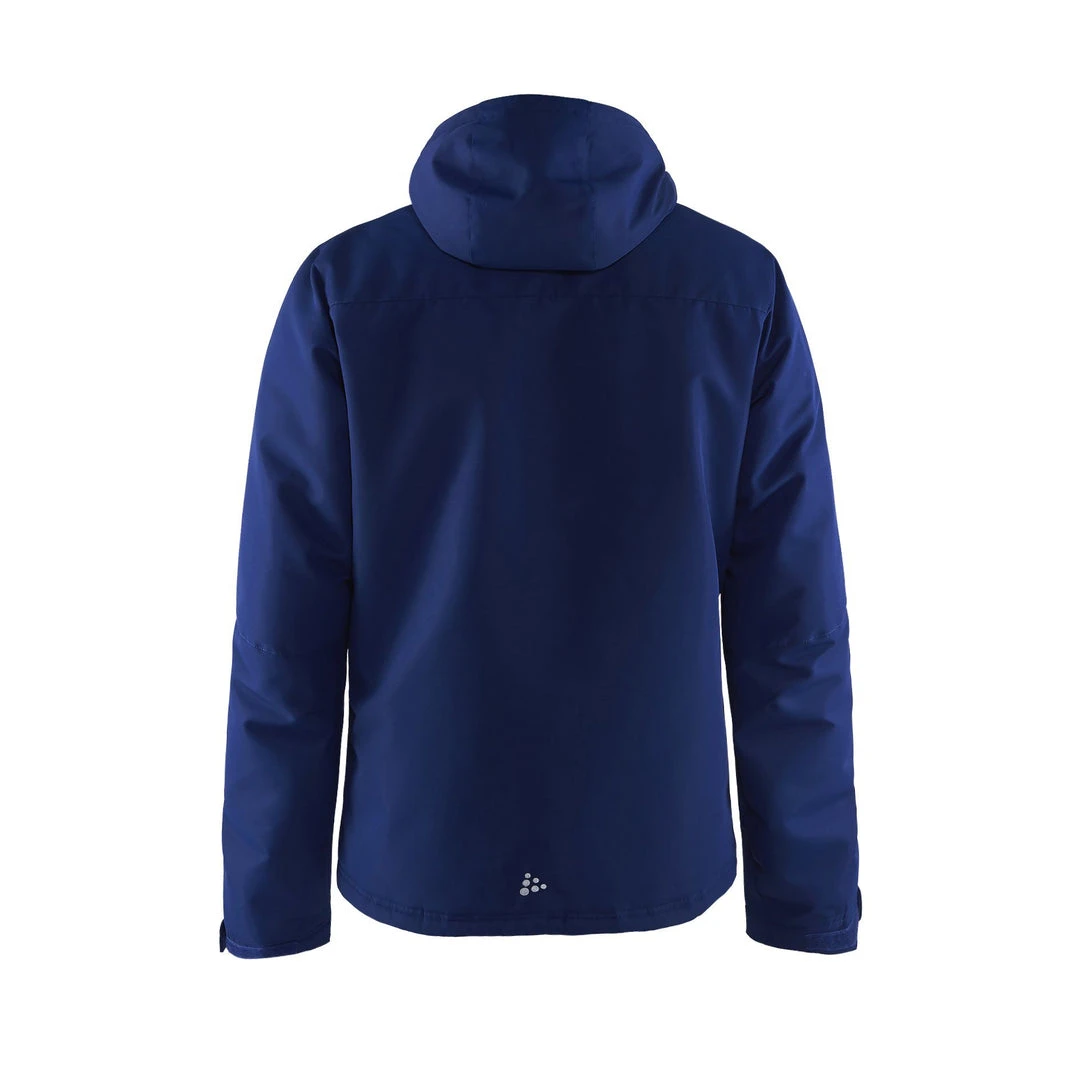 Wind-and Waterproof jacket fully lined with padded body, sleeves and hood. Zipper on inside back to allow for embroidery. Two chest pockets with flap closure and two hand warming pockets with zipper. Soft fleece on inside of front collar. Adjustable elastic at hood and bottom. Adjustable flaps at bottom of sleeve. Inside storm flag along zipper