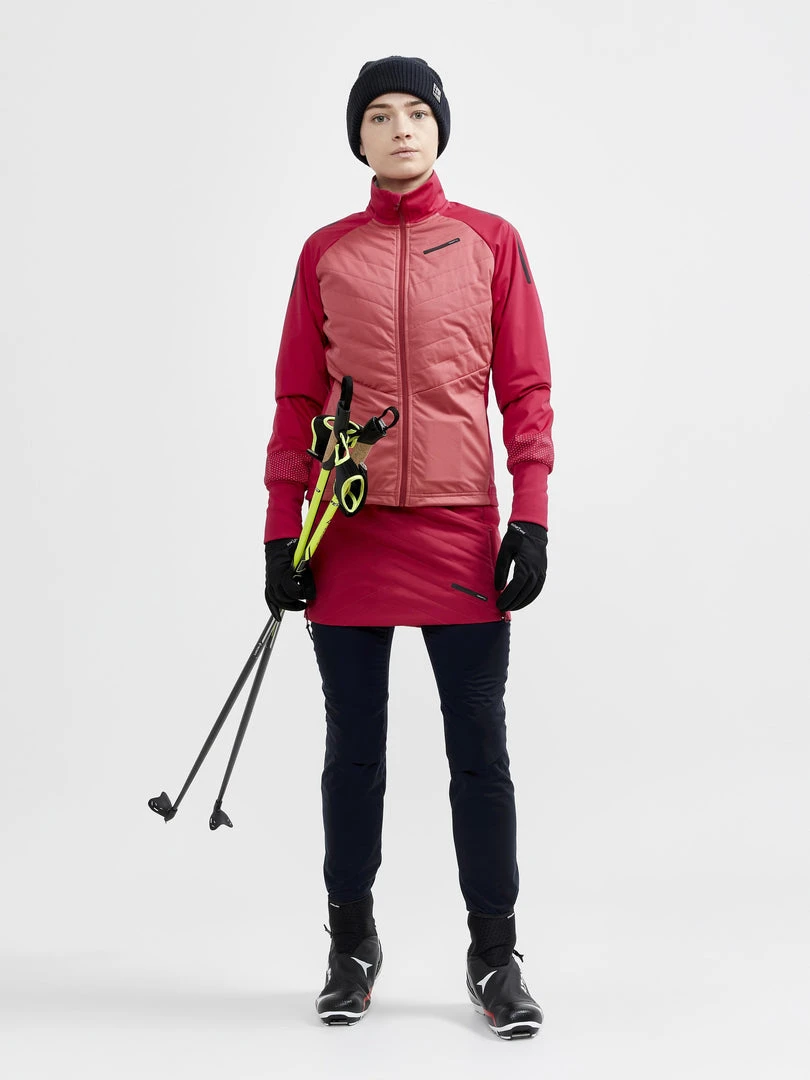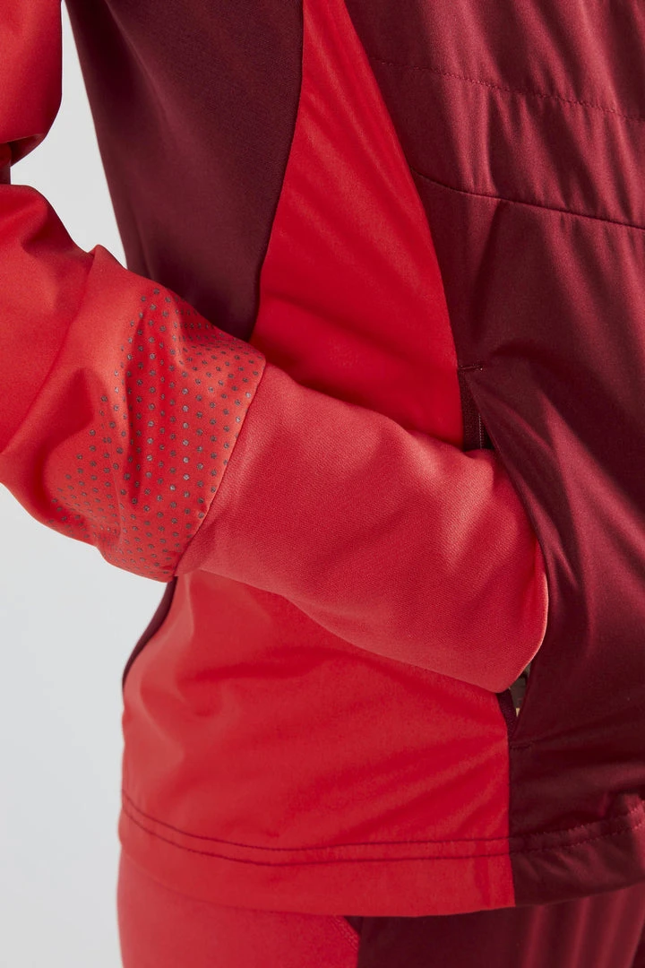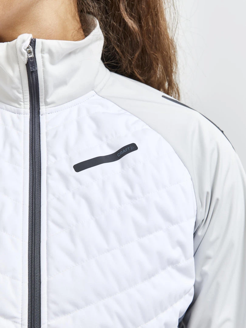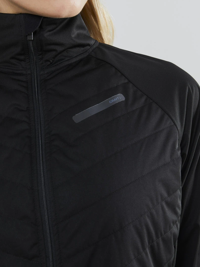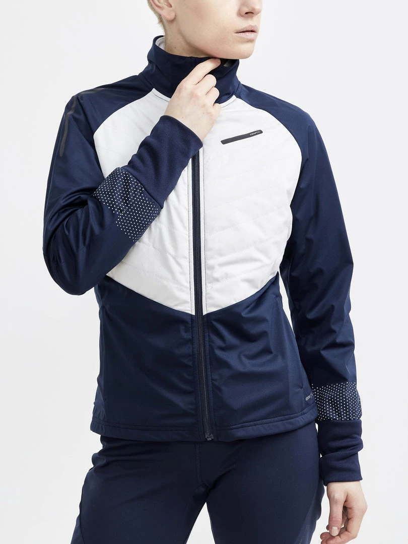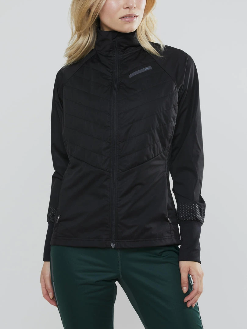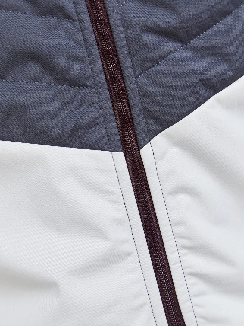 Warm Nordic jacket in recycled fabrics with quilted light-padded front and back for warmth and comfort. Elastic, lightweight and windproof fabric at front. Pre-shaped sleeves and Reflective prints and tapes at front and back for ehnanced visibility.