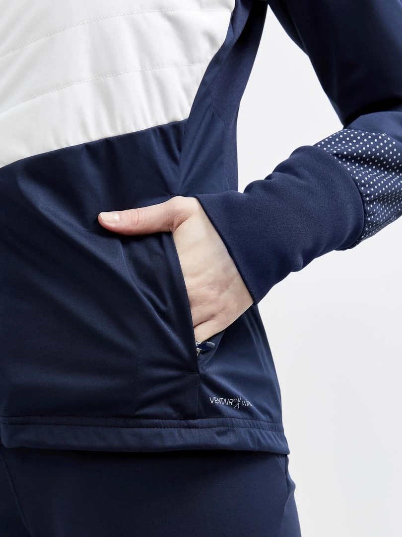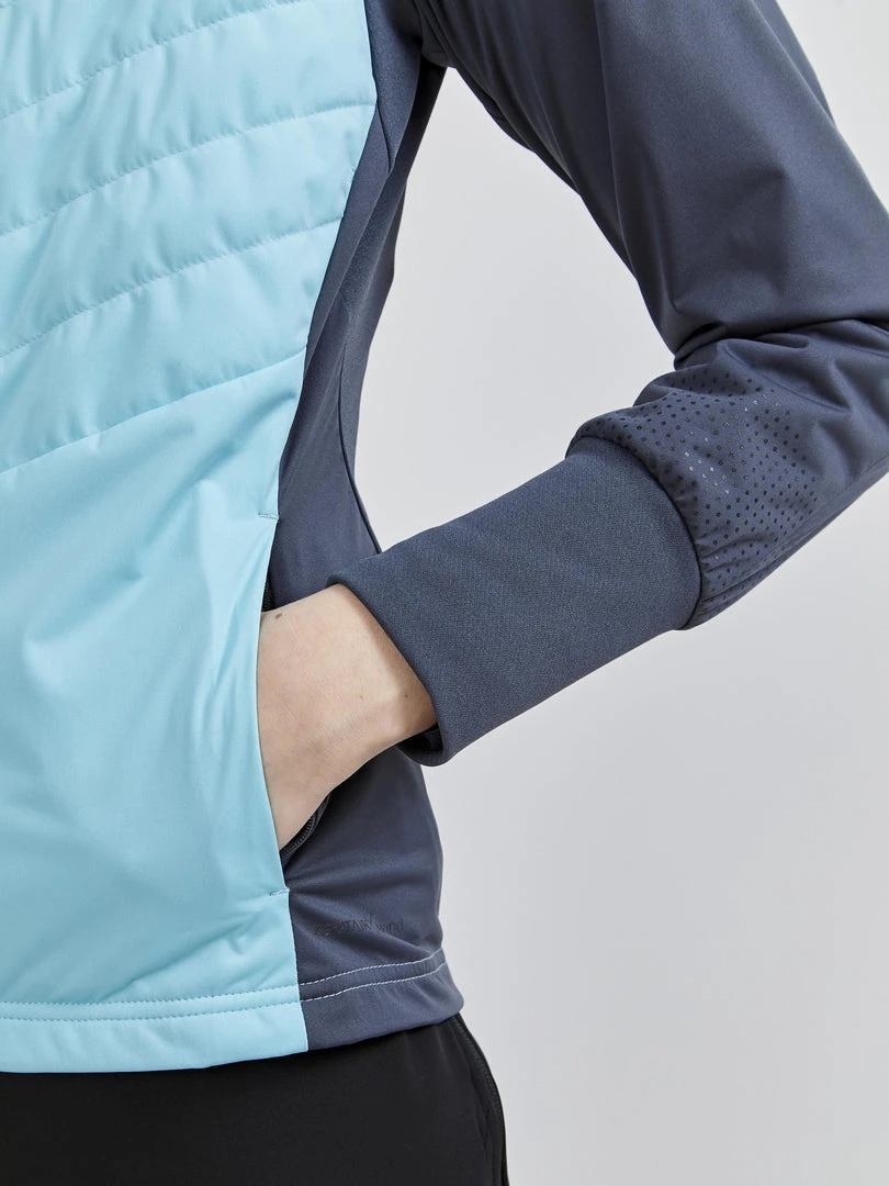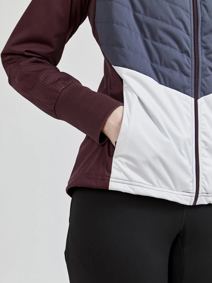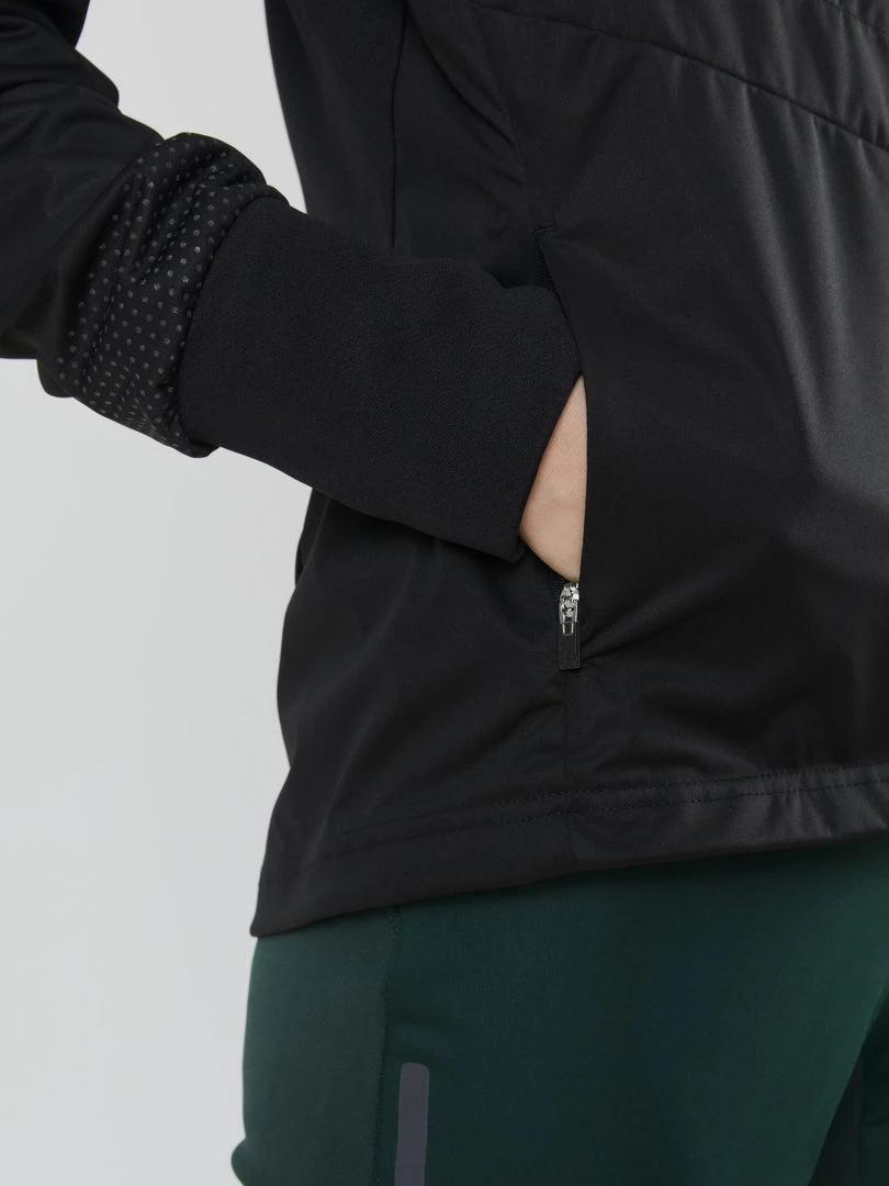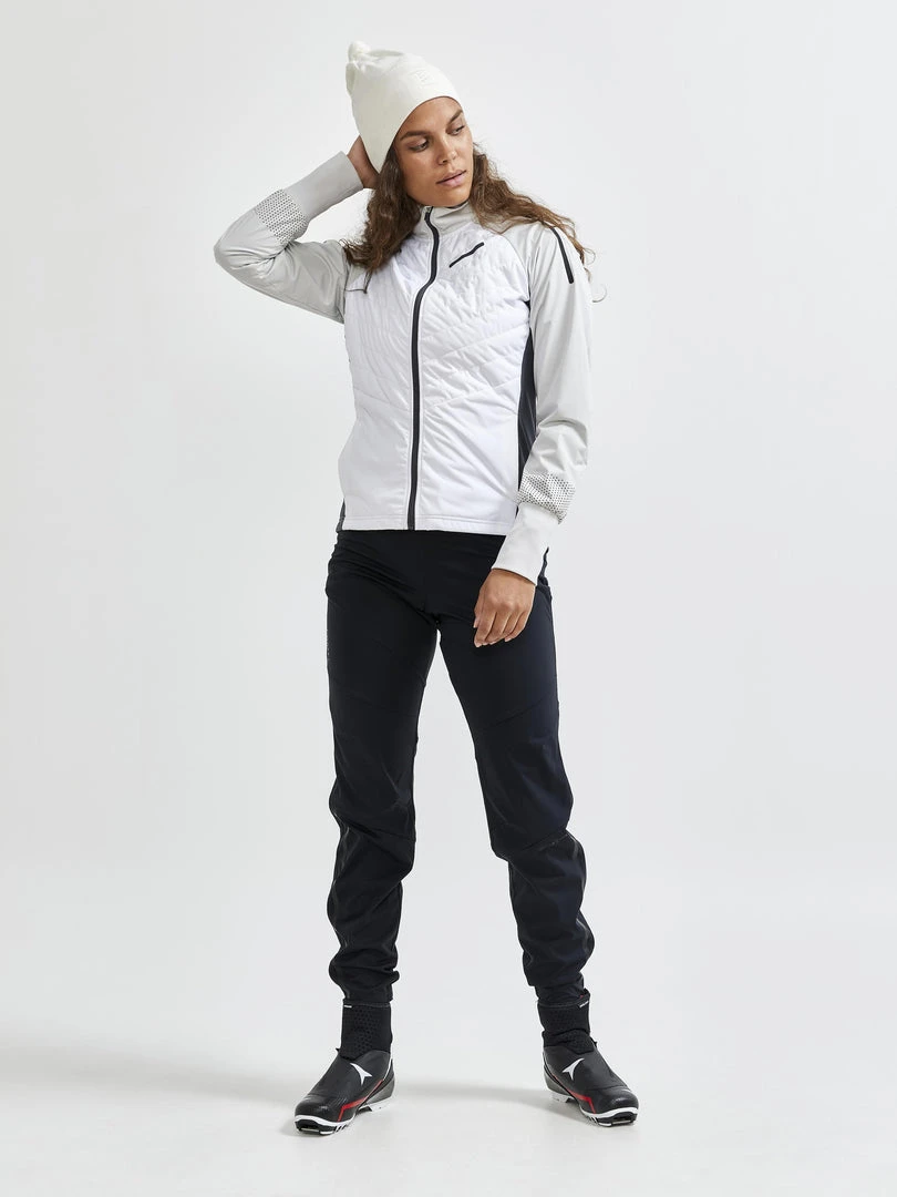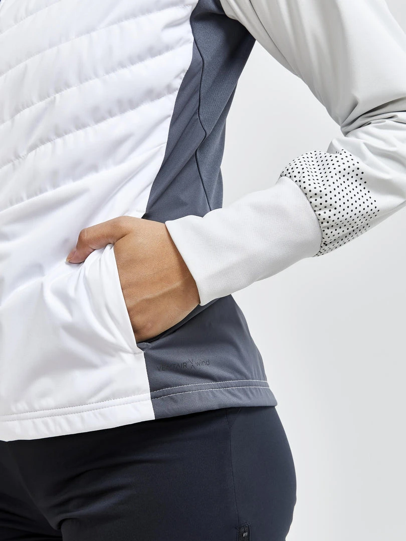 Warm Nordic jacket in recycled fabrics with quilted light-padded front and back for warmth and comfort. Elastic, lightweight and windproof fabric at front. Pre-shaped sleeves and Reflective prints and tapes at front and back for ehnanced visibility.