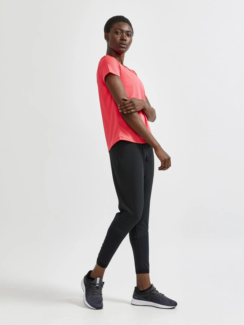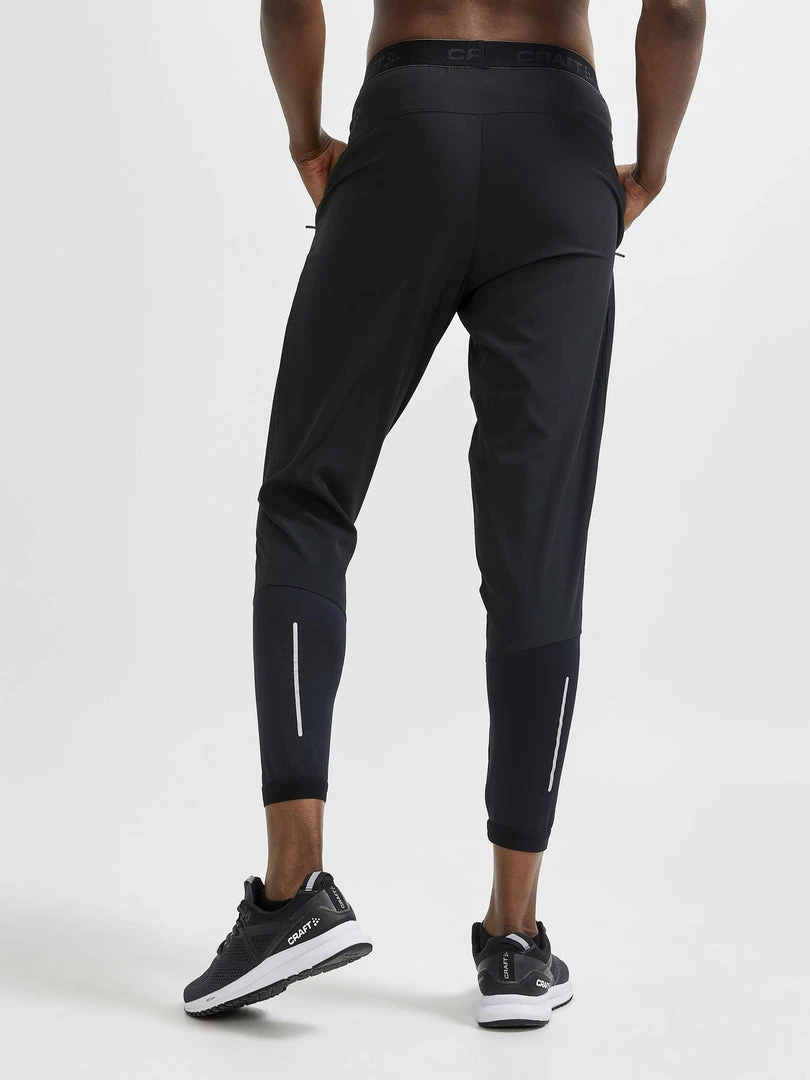 Our favorite training pants in woven stretch polyester with tapered leg, elastic jersey at bottom for optimal fit and two concealed side pockets.