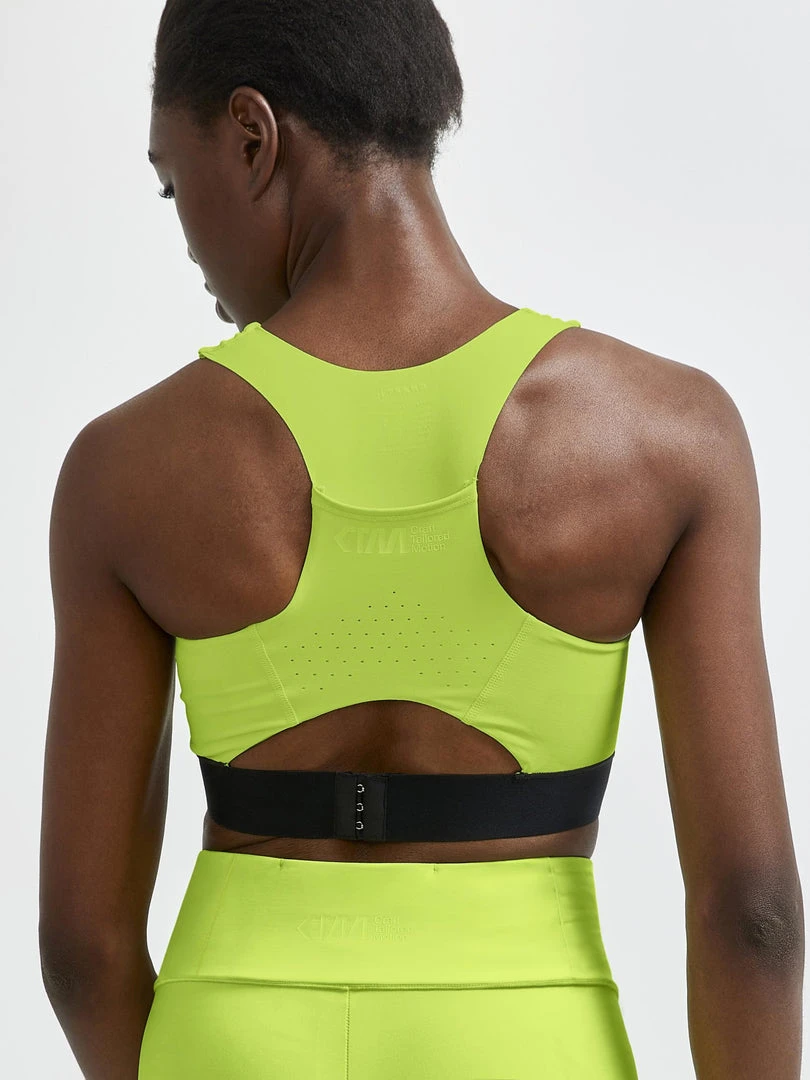 Thoughtful details make all the difference with this premium running bra. Made of perforated polyamide jersey with printed reinforcement for enhanced stability and pullback, the CTM Distance Sport bra provides optimal comfort for your longest distance runs.