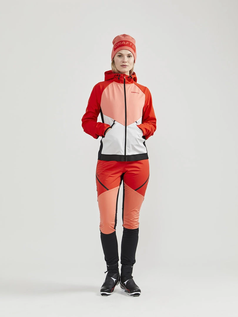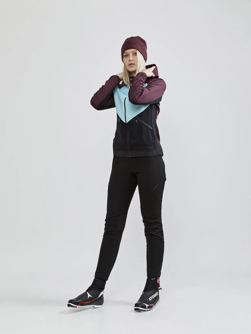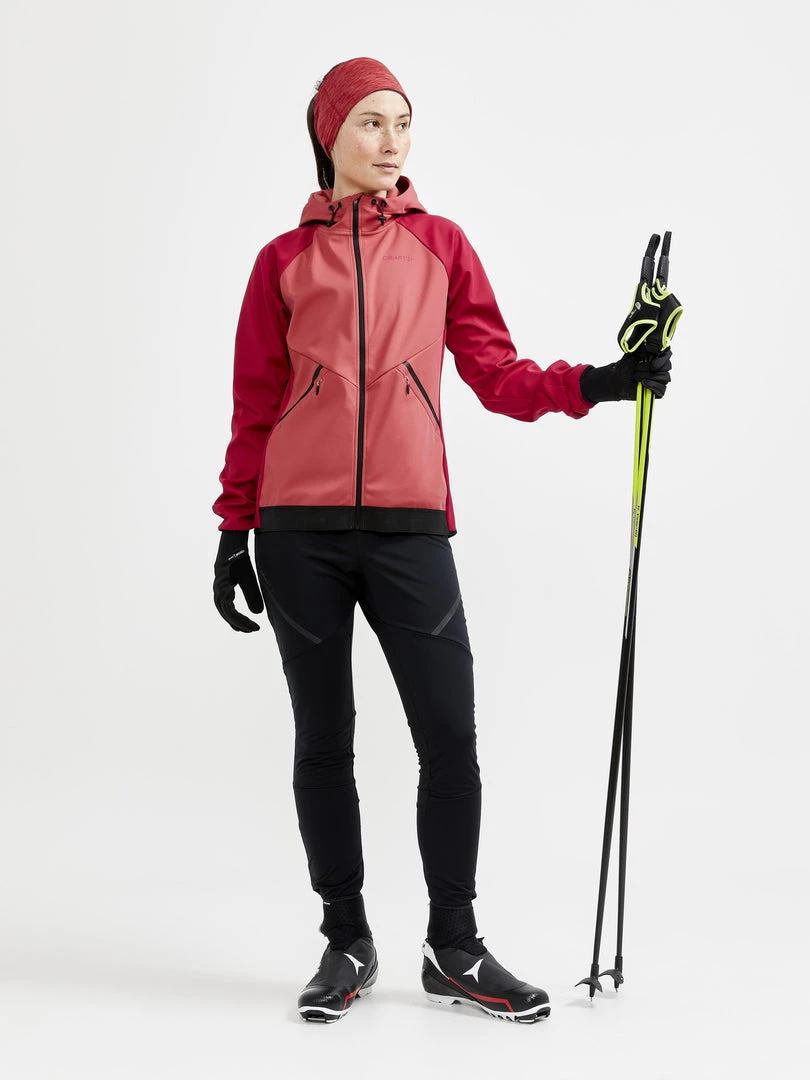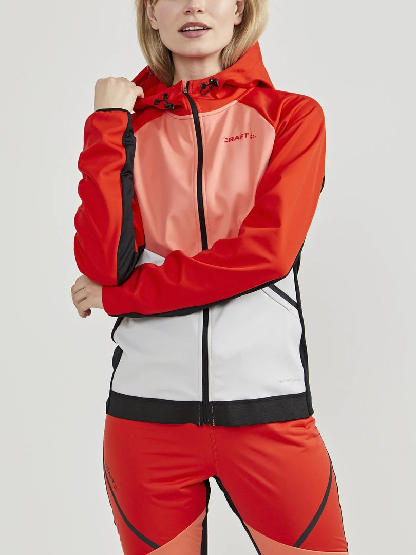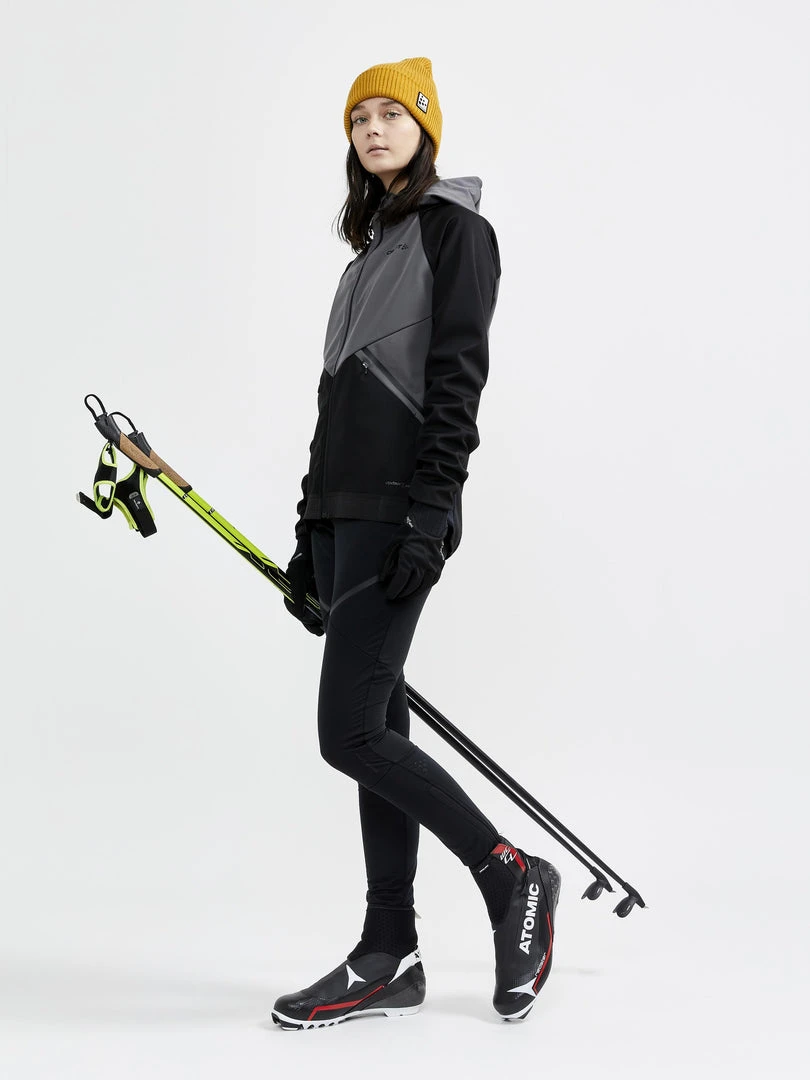 This hooded nordic ski jacket is designed to withstand training in cold conditions. Its elastic 3L wind- and waterproof fabric keeps you warm in foul weather, while elastic jersey at sides and under sleeves provides ventilation to prevent overheating.