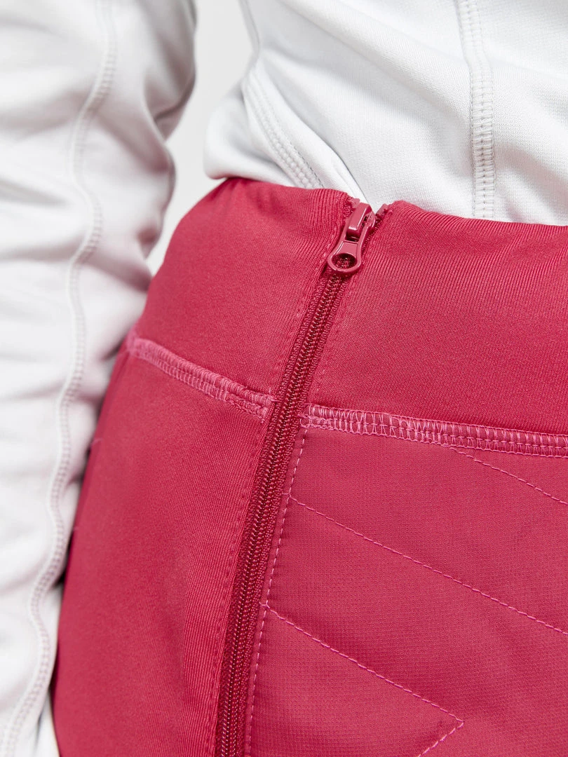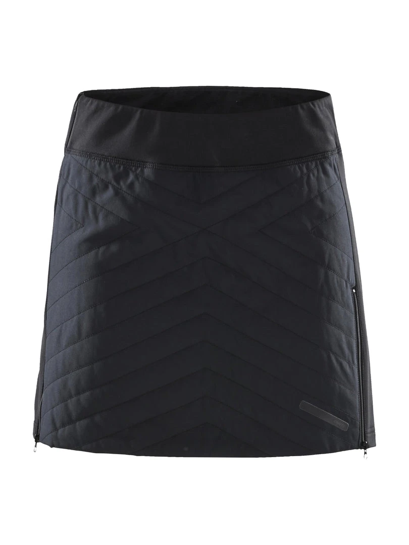 Padded and wind-protective body-warming skirt with great stretch. Quilted light padding for warmth and comfort. Full zip at right-hand side for easy on and off and half zip at left-hand side for easy movement. Elastic jersey waistband with brushed inside for comfort.